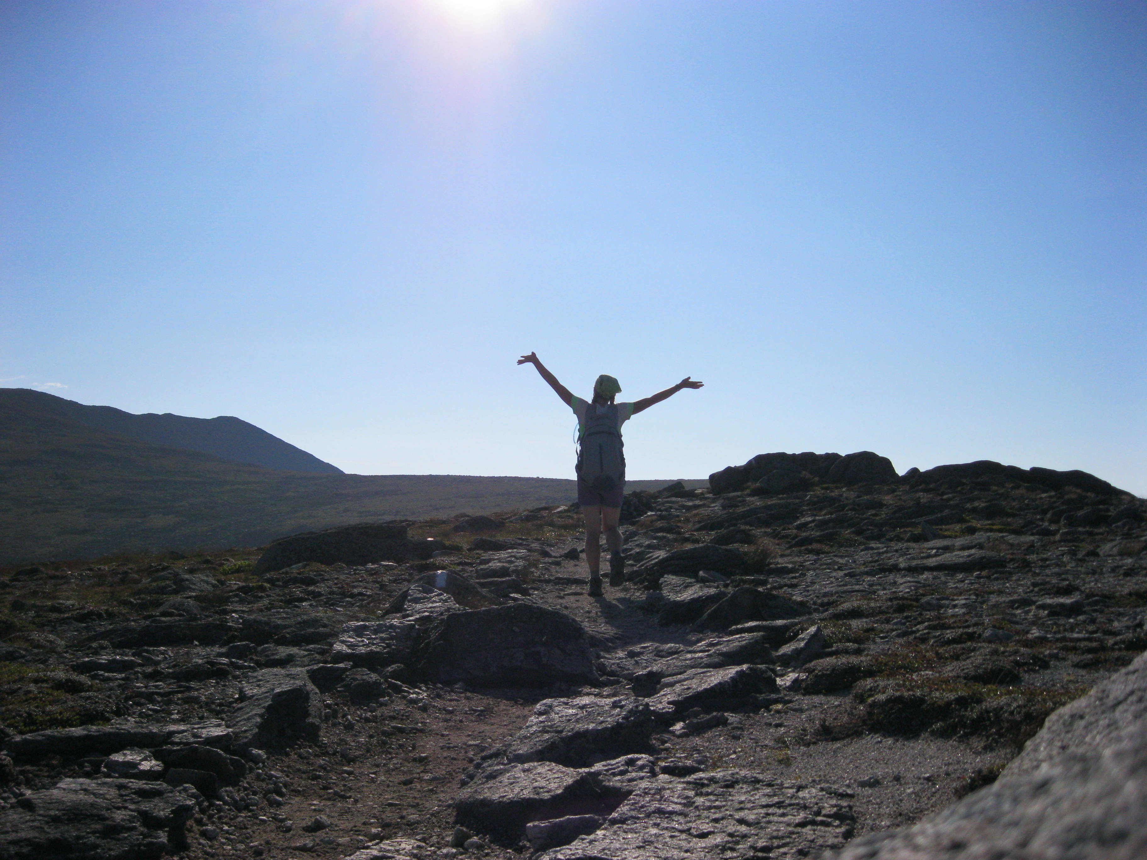 On the morning of August 6th, at 8:45 am, I made it to the top of Katahdin. It was a gorgeous day, probably the best it gets up there. I felt like I was in the sky, and the air around me seemed a brilliant blue. I got a little scared by the sketchy rock climbing I had to do, mostly because I knew coming down was going to be really dangerous (not to mention that I’m a big scare-d-cat when it comes to heights). Regardless, I made it up there in great spirits, sat by the infamous Katahdin sign, ate my last hiking meal, and looked south, feeling peaceful and satisfied.
